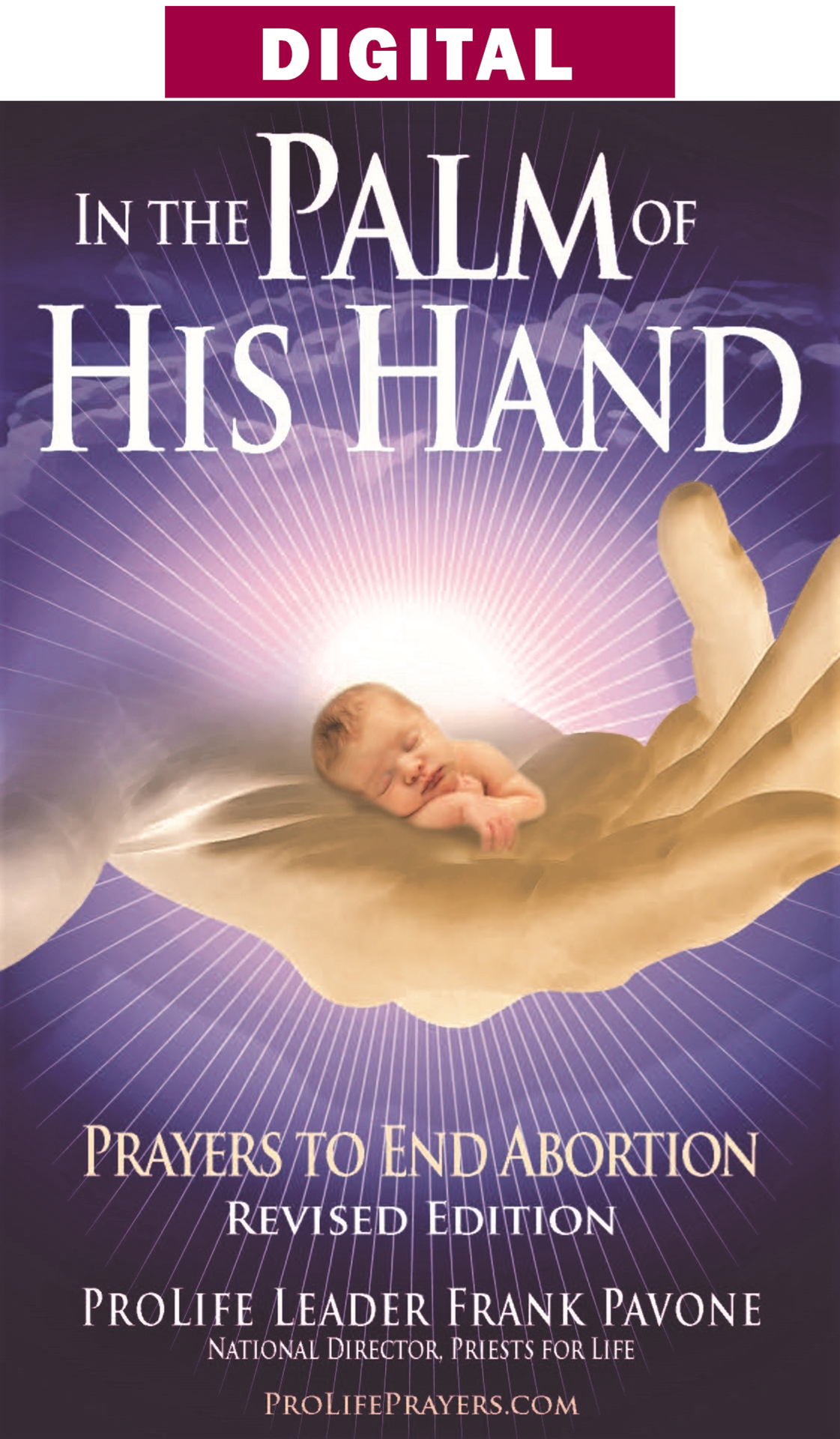 Thank you for your longstanding witness to life and especially for your Booklet: "In the Palm of His Hand." While praying with this booklet many times during exposition of the Blessed Sacrament in our parish, Holy Spirit moved me to a much deeper awareness of life within me. – Carol, Gignac, CT.